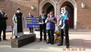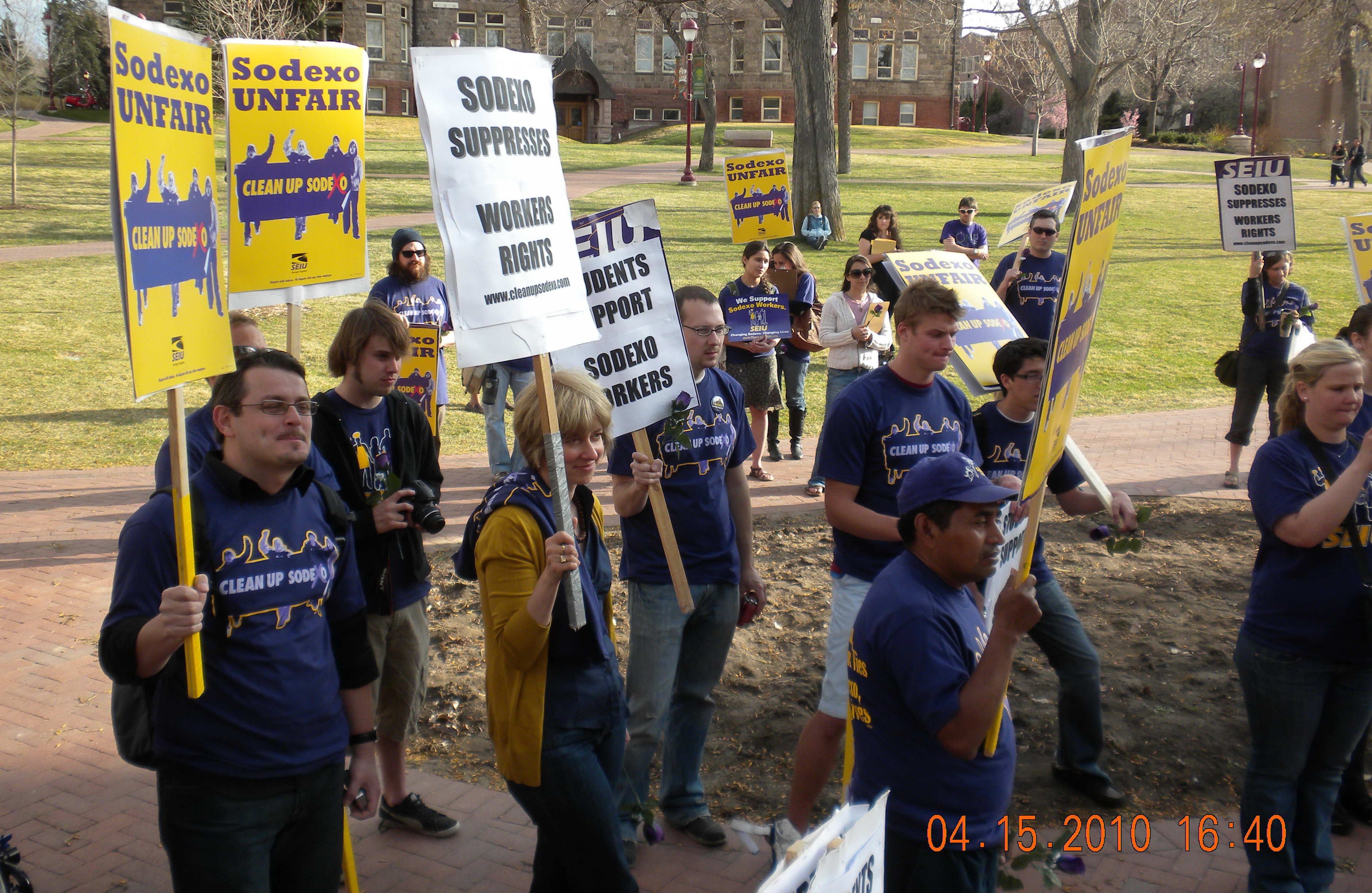(Note: Yesterday – April 15, 2010 – I attended an event organized by University of Denver students in support of university employees of SODEXO, the multi-national corporation that has the concessions contract at the university. As a part of a national effort, DU’s SODEXO workers have been trying to unionize. The company refuses to even meet with the union despite numerous attempts to do so on the part of the Service Employees International Union – SEIU. The University claims to be `neutral’ in the controversy between SODEXO and the SEIU, which essentially means that they will not lift a finger to help SODEXO employees unionize and get improved salaries and working conditions.