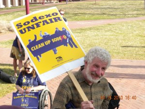 Diane also said “most of the workers are really hard workers, yet they don’t get respect or fair treatment. We like our jobs; we love to serve the students. We relate to them, we like to hear their stories. I also really love to cook…Sodexo’s fear and intimidation tactics should stop! I like my job,,.but me and my coworkers are tired of being the backbone of this company and not getting recognized for it.” Like Walmart, Sodexo’s style of capitalism is inconsistent not only with a middle class life, but with democracy and decency.
