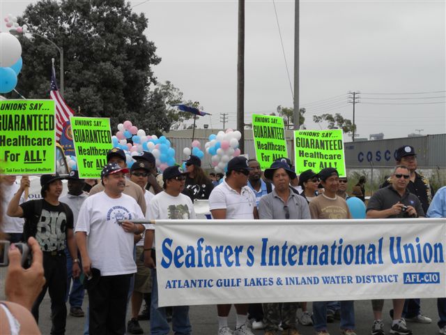 That labor coalition has now grown to 50 unions and they presented their demands on banners, signs, posters, T-shirts and in speeches: support universal single-payer health care (pass California SB 810), protect and create jobs, pass the Employee Free Choice Act and organized the unorganized, defend Social Security, support workers’ rights and dignity, create green jobs and protect the environment, support international labor solidarity, support strikes and other union protests, support immigrant and women’s rights, fight against sweatshops and child labor, remember and honor union martyrs – especially those killed here in the 1934 general strike,