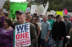 Occupy Wall Street is a people powered movement that began on September 17, 2011 in Liberty Square in Manhattan’s Financial District, and has spread to over 100 cities in the United States and actions in over 1,500 cities globally. OWS is fighting back against the corrosive power of major banks and multinational corporations on the democratic process, and the role of Wall Street in creating an economic collapse that caused the greatest recession in generations. The movement is inspired by uprisings in Egypt,Tunisia, Spain, Greece, Italy and the UK, and aims to expose how the richest 1% of people who are writing the rules of the global economy and are imposing an agenda of neoliberalism and economic inequality.
