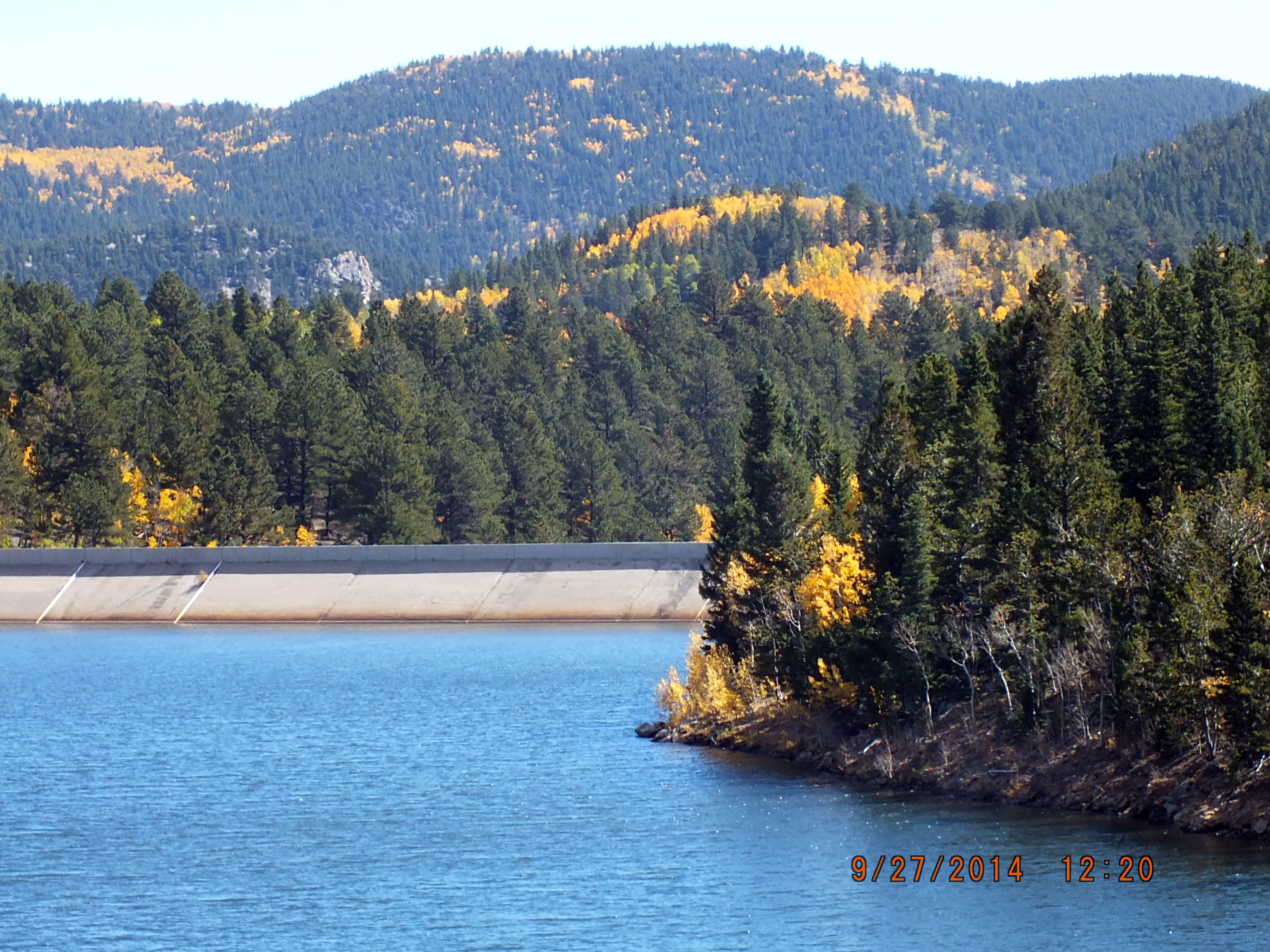 The photo is on Apex Valley Road, a dirt road leading up the Apex Mine just off of Highway 119 – the “Peak-To-Peak” Highway in the Colorado Rockies. The cutoff is a few miles north of the turn to Central City, which used to be a preserved old mining town – now turned into a gambling Mecca. I used to go up this road to look for mushrooms and in some years have found plenty – bolettes galour spiced with a few Steinpiltz types. It was in the late 1990s and I drove the road to the mine in my old Toyota 1984 2-wheel drive pick up on cool clear fall days like today. Then the mushrooms disappeared – they are fickle things – and for this and that no-good reason, the trips stopped. It’s about fifteen years since I ventured that way but when Nancy and I talked about taking a half day trip up the mountains to see the aspen turning, I remember the area. On the way back down the road there is a cut-off to the right which leads to the high ground above Central City. There are a few cemeteries and the Columbine Camp Ground. When our dog Cloudy was young and alive we’d take her up there and let her romp around the forests.