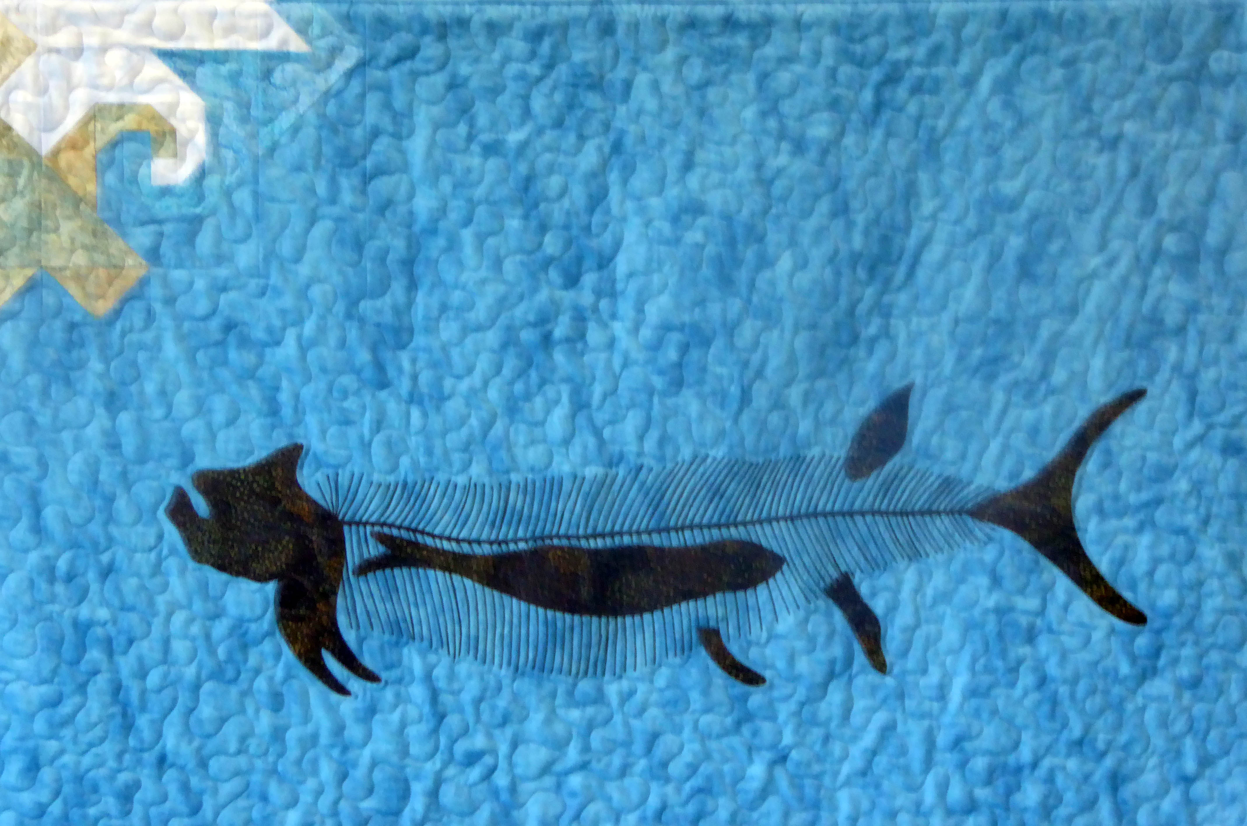 My kids and I just went to Sternberg Museum this past week to see our favorite fish within a fish. I am in love with the quilt you have pictured at the end of your post. Do you know where I can find a pattern?