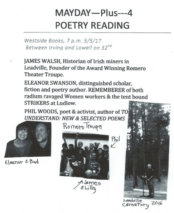 Poetry Reading: May 4, 2017; Westside Books.3434 W 32nd Ave. Denver, CO 80211 (303-480-0220)