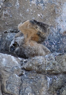 Articles on the library owls go back to at least 2012. They have been intensively studied, photographed and are nothing less than local celebrities. There is a detailed history of their occupation on the ledge, including of how in the spring of 2015, the owls had to move to safer grounds after some idiot humans climbed down the cliff from above to get a close up photo, disturbing the nest. Owls, it appears, don’t particularly like any living activity hovering above them.