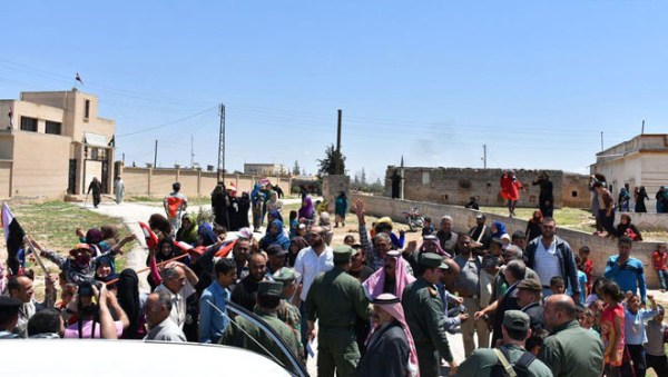 May 15, 2018. Citizens and Syrian Army militants celebrating the liberation of villages in the Hama-Homs region of Syria from ISIS-al Nusra like forces.
