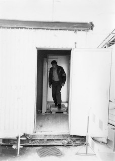 As a part of the conference, we briefly visited the Chernobyl site itself and took a bus ride through Pripryat, the small abandoned town where many of the Chernobyl employees lived before being evacuated. Pripyat, once a 50,000-strong city but now a ghost town, where books still sit on school desks and May Day decorations flutter in the streets. Our delegation could only remain at the site of the nuclear power plant itself for five minutes. I took a number of photos at the time, which I lost for three decades until they reappeared in some old papers I was going through. The one above is from the plant. The one below was the little decontamination cabin we had to go through before leaving the area. It was a rather crude set up. Our shoes were washed off with water. That was about it.