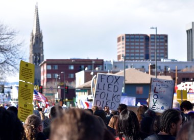 (Yesterday at the “Marade” – Denver’s annual march to honor Martin Luther King II’s legacy, now in its 35th year – I took a picture of someone holding a sign “Fox News Lies; Folks Died.” That triggered a discussion with Nancy who was marching with me despite some pain in her hip. We both agreed that it was not only Fox News that lies, but also the NY Times… of course the latter does it far more eloquently and articulately – not quite lies, but what could be called “gray propaganda”.