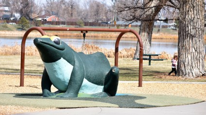 I cannot go to the park without giving it a nostalgic glance, happy to see, although most of the playground equipment has been modernized and changed, that the green frog remains – just as green, just as much of a challenge for a 3, 4 year old to climb, just as enticing.