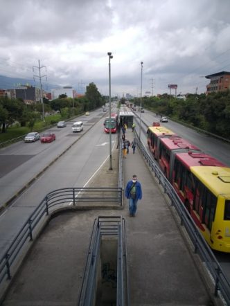 Looking south towards Bogota This autopista is normally chocked with traffic buses are generally stuffed to the gills. The normal crowded empty except for the police that man each station. Bus after empty bus stop at the station and move on. A few buses had one to three passengers (Photo Credit: Greg Rood)