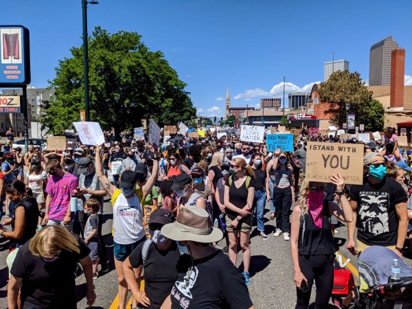 Denverites – thousands of them demonstrating against the police killing of George Floyd in Minneapolis, and for radical social change in America. (Photo Credit – Ben Harnke)