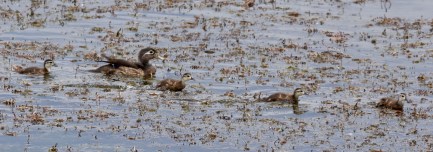 wood duck mama and her ducking at Clear Creek Valley Park. Although there are four in the photo there were six in all