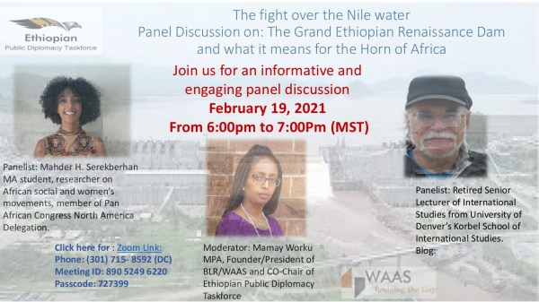 The Fight over the Nile Water – Panel Discussion on The Grand Ethiopian Renaissance Dam – February 19, 2021 @ 6-7pm MST