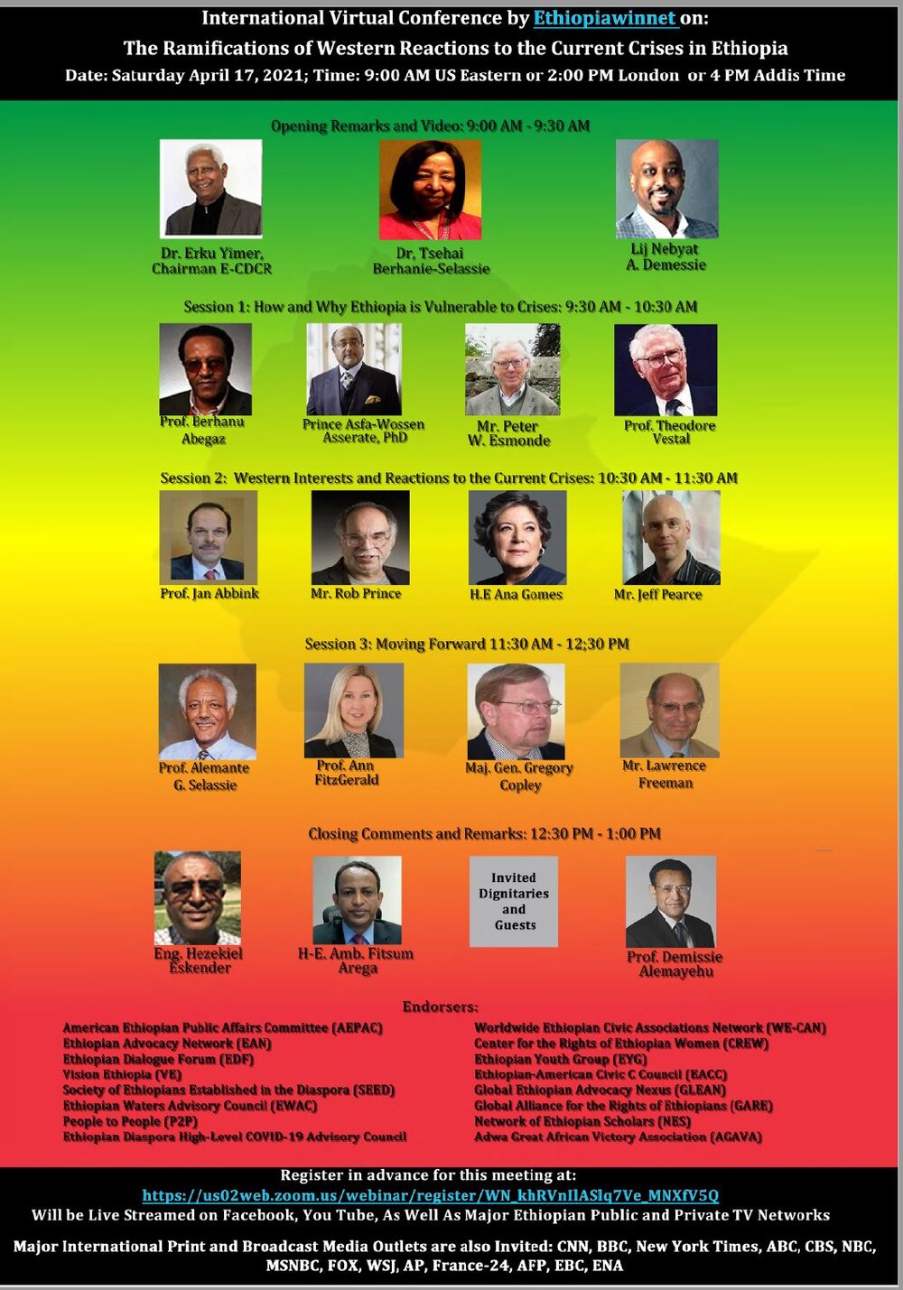 International Virtual Conference: The Ramifications of Western Reactions to the Current Crisis in Ethiopia. Saturday, April 17, 9 am – 1 pm EST