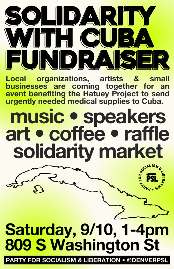 Solidarity With Cuba Fundraiser – Saturday, September 10 1-4 pm – 809 S. Washington St. Denver