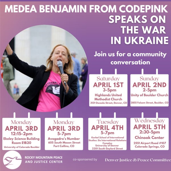 Media Benjamin Talks Peace in Ukraine in Colorado – April 1-5, 2023
