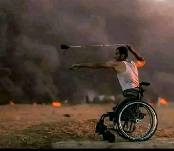 If I am not mistaken, this photo was taken during the protests in Gaza in 2018 in which hundreds of Palestinian protesters were shot in cold blood by Israeli snipers and Israeli civilians – as if at a sports stadium sitting in the bleachers – cheered on the assassins
