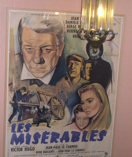 From former days of French glory. Poster for early version of Les Miserables starring Jean Gabin in the Victor Hugo Museum in Paris. December, 2006. (R. Prince photo)