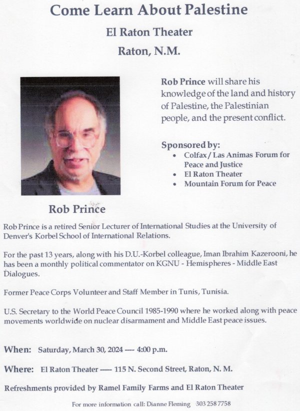 Come Learn About Palestine – El Raton Theater, Raton New Mexico – Saturday, March 30, 2024 @ 4 pm