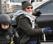 Mike Wilzoch getting arrested for civil disobedience. He was protesting the policies of the Jewish National Fund and against the U.S. sponsored Israeli slaughter of Gazan Palestinians. Me too