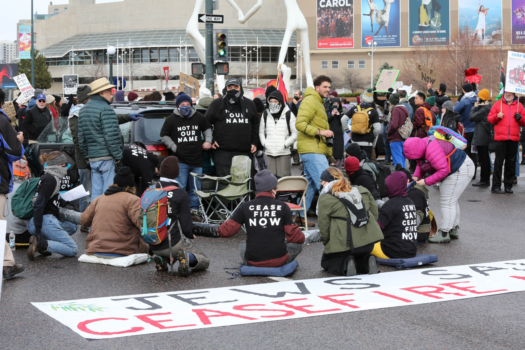 December 3, 2023 civil disobedience in downtown Denver organized by Front Range “Jewish Voice for Peace”. Call for a permanent ceasefire still as valid then as it was ten months ago …