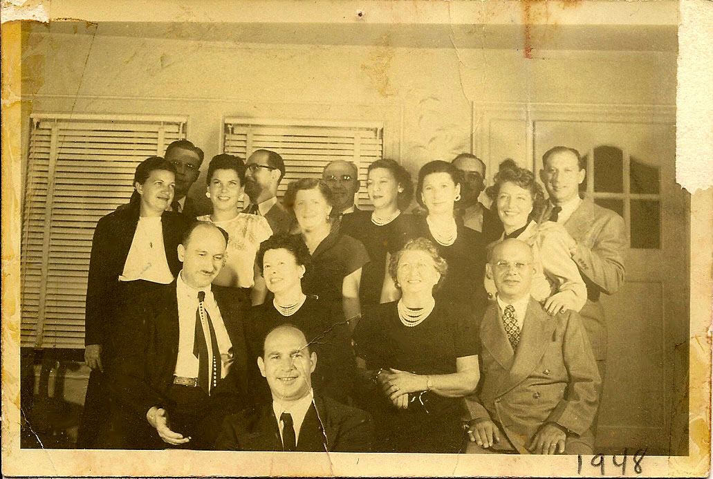 David Levine and I believe we have uncovered one piece of the puzzle through comparing matching photos. The mystery in this above 1948 photo of the Magazine siblings and their partners – the two seated on the lower left. All the rest most of my remaining cousins can easily identify.