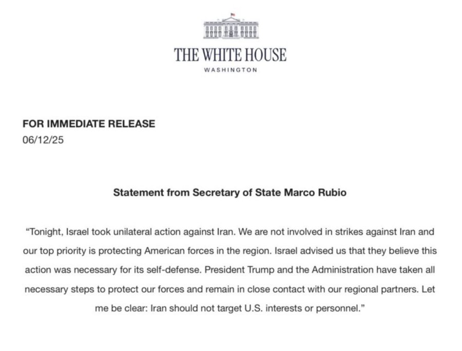 In its desperation – wounded beast syndrome – Israel launched an air attack on Iran. Initial reports are that a residential area was hit. No word yet on how the Iranians will respond. Trump Administration in a statement by Marco Rubio claims the US was not involved … not a credible statement but tomorrow we’ll know more.