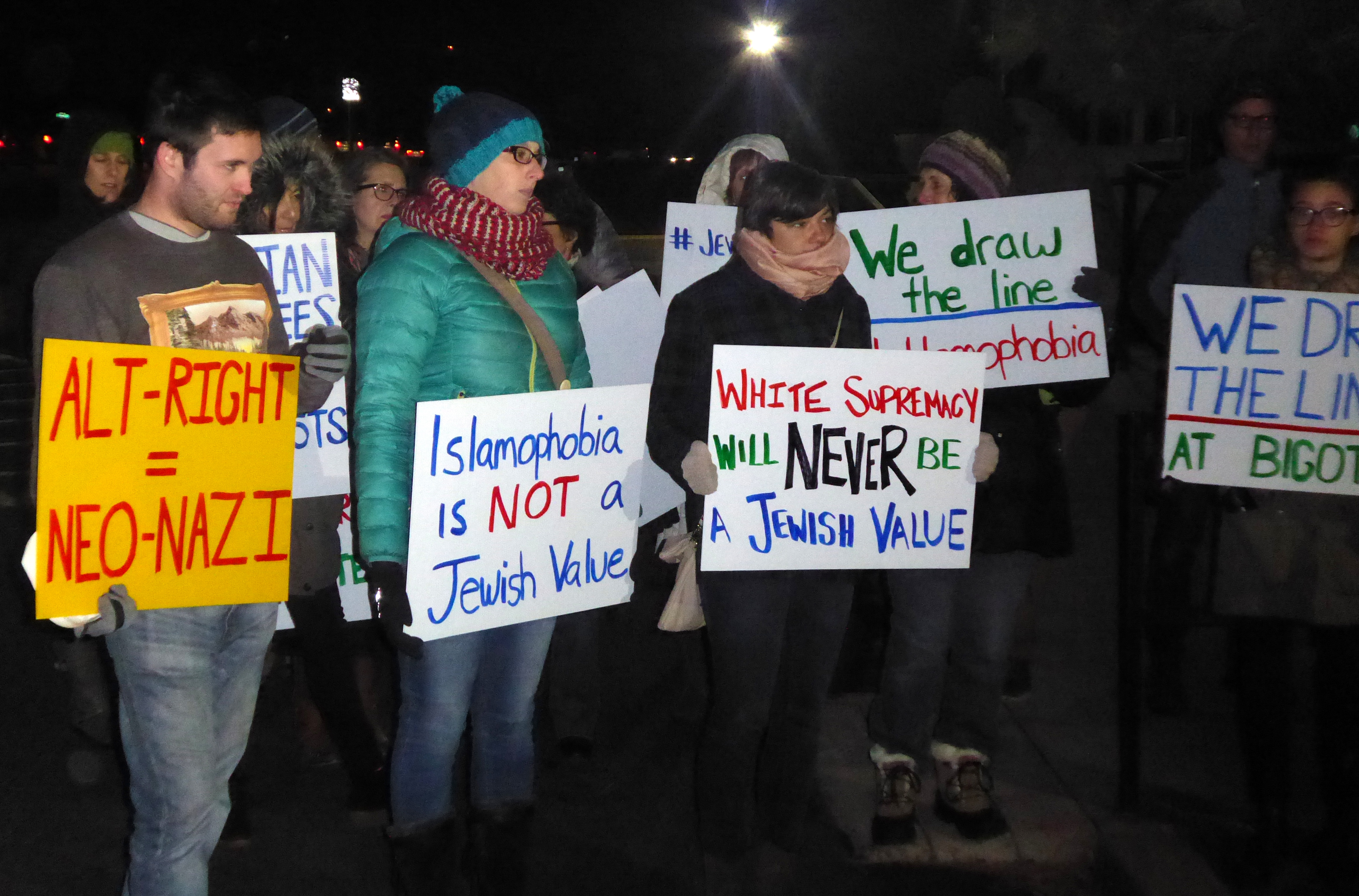 November 30, 2016 demonstration in front of Denver’s Jewish Community Center, sponsored by “Not In Our Name”