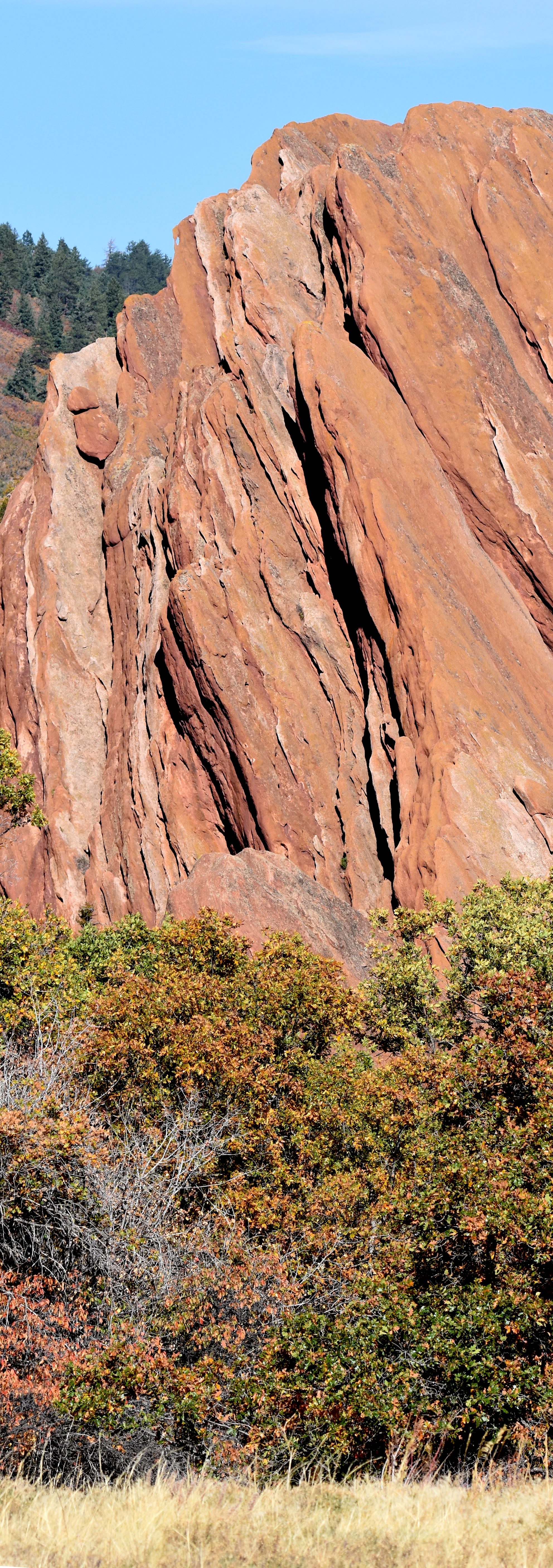 From our home in Northwest Denver, Roxborough State Park is some 35 miles away, south past the Chatfield Dam and onto North Rampart Road. When I first came to Colorado 51 years past, there was “nothing” out there, that is to say a few ranches along the edge of the mountains reaching out onto the High Plains. Now it’s a different story with the development cancer extending to the edge of the park. That the park itself didn’t get gobbled up in some development scheme is about as close to a miracle that I can think of. Visiting Roxborough anytime of year is worth the effort, but to do so on a mild and sunny day in early October with the trees and bushes turning different shades of green, brown, yellow and red only adds to the experience.
