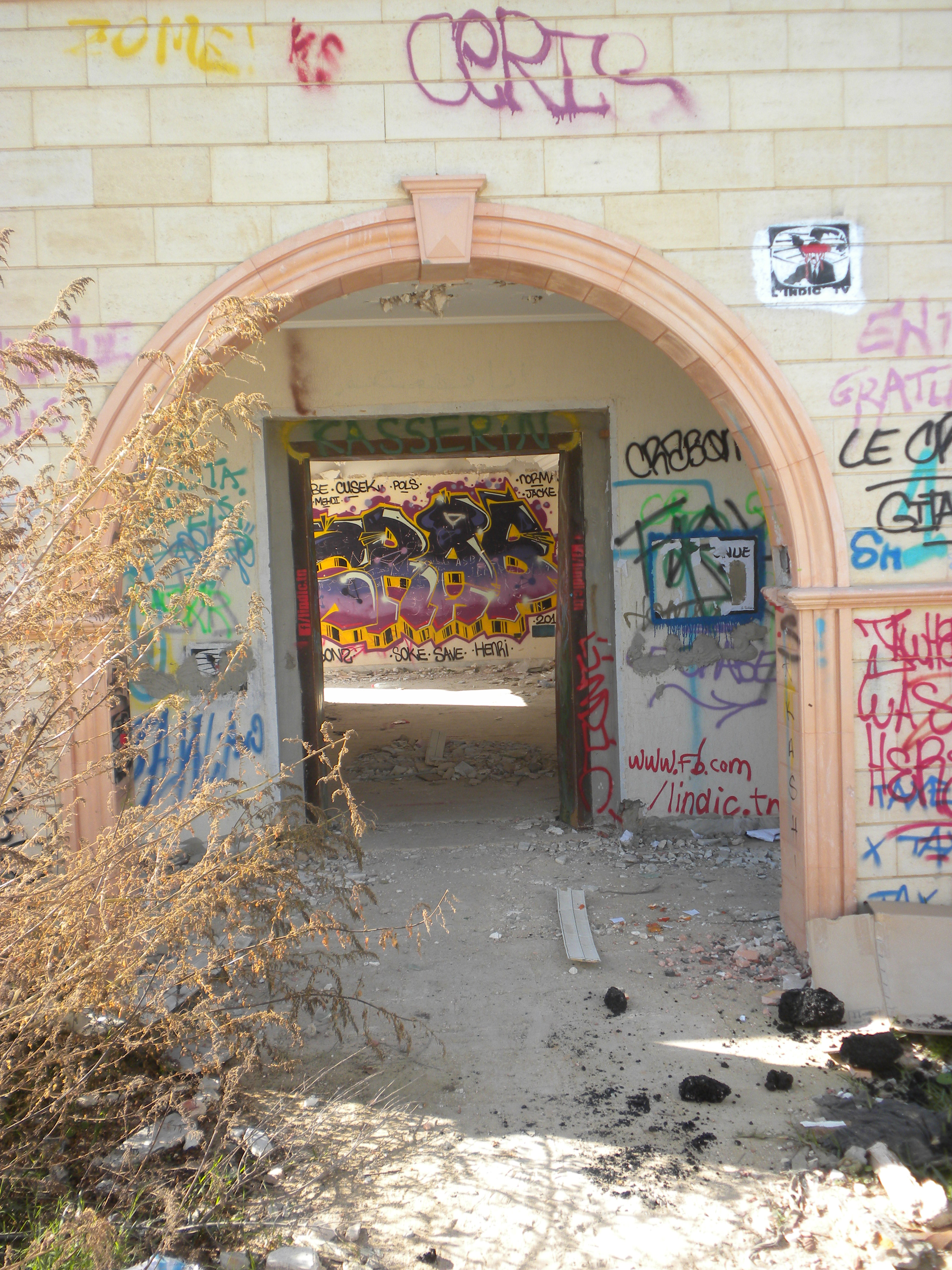 The mansion belonged to Imad Trabelsi, one of Leila Trabelsi’s nephews, recently sentenced to 18 years in prison by a post Ben Ali tribunal. Among Imad’s many escapades was one where, along with his brother, he was accused of stealing a french financier’s yacht, painting it over, changing the numbers, making it his own. One of the graffiti notes left on the wall filled with slogans against the Ben Ali years read `Dear Imad – Thanks for the wall – signed Abdel Aziz.’ The place was thorough trashed, pulverized really, as if hit by a drone missile gone astray from Pakistan! All the other Ben Ali – Trabelsi mansions, many of them, like this one built on property expropriated from the state to the two families – lie in similar ruin. Not roped off, they remain open to the public. Read more…